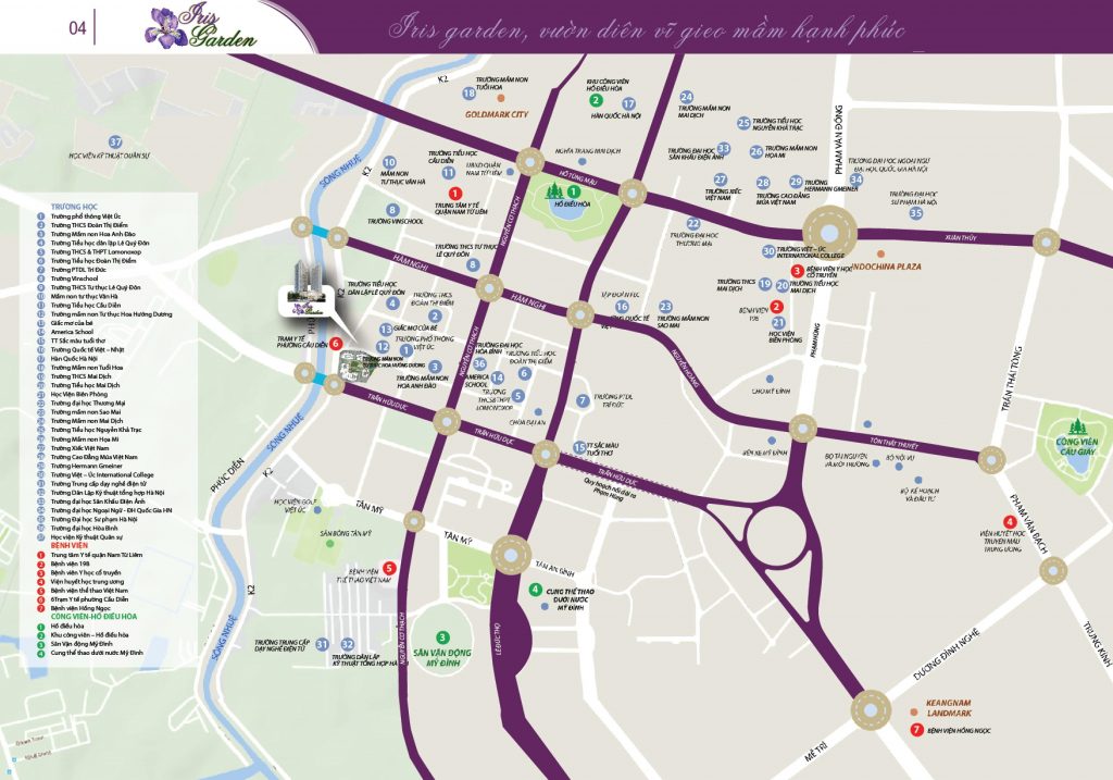 Có thể kể đến hệ thống các trường học lớn ở nhiều cấp học như trường Marie Curie, THPT chuyên Amsterdam Hà Nội, Đại học Quốc gia, Đại học Sư phạm,... cùng các trung tâm mua sắm lớn như Metro, The Garden hay sân vận động Mỹ Đình, cung thể thao dưới nước, Trung tâm Hội nghị Quốc gia...