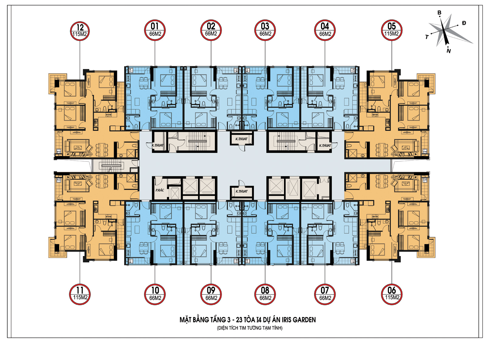 Mật độ : 12 căn / sàn. Thiết kế 6 thang máy chất lượng cao 3m/s.