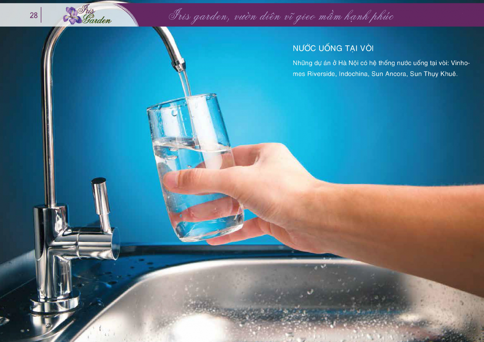Nước sạch tinh khiết đến từng căn hộ: Nếu như vấn đề nước sinh hoạt ô nhiễm, lẫn nhiều tạp chất, đường ống dẫn nước một năm bể vỡ nhiều lần là mối lo lắng bất an của biết bao gia đình thì tại dự án Iris Garden Trần Hữu Dực cư dân có thể hoàn toàn yên tâm, bởi nước trước khi đi vào bể chứa của cư dân sẽ trả qua công nghệ lọc nước hiện đại nhất đảm bảo nguồn nước tinh khiết đến từng hộ gia đình, cư dân có thể uống nước ngay tại vòi mà không cần phải lọc hay đun nấu lại.