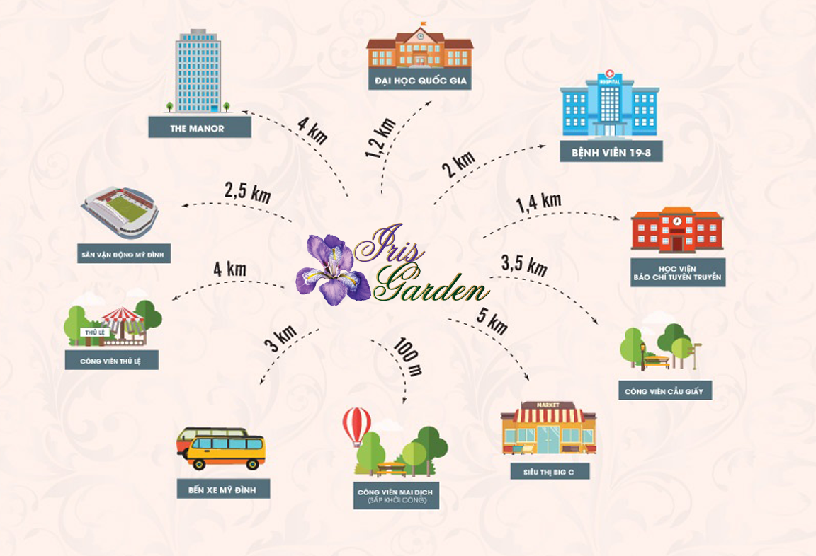 Dự án Iris Garden thừa hưởng toàn bộ tiện ích khu vực Mỹ Đình bao gồm: